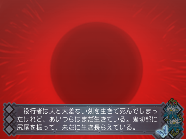 一つ気になったのは旅館の女将さんが槐の神木の樹齢が1200年以上と言っている事で、そうなると時代が百年近くずれる事になるのですが……まぁ「以上」なので1300年位だとしても良いと言う事かも知れませんが。この辺の詳細は浅間サクヤルートで分かればと思います。