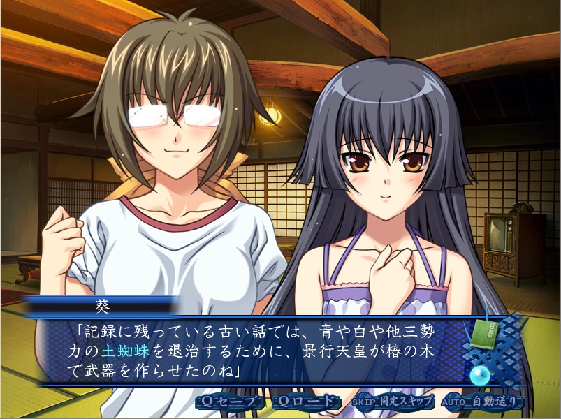 因みに、公式ページのWebノベルは保美ルートですが、景行紀の土蜘蛛の話は無く、やはり蜘蛛切りの説明になっているようです。(参考:公式サイト「Webノベル「アオイシロ」第5章」)